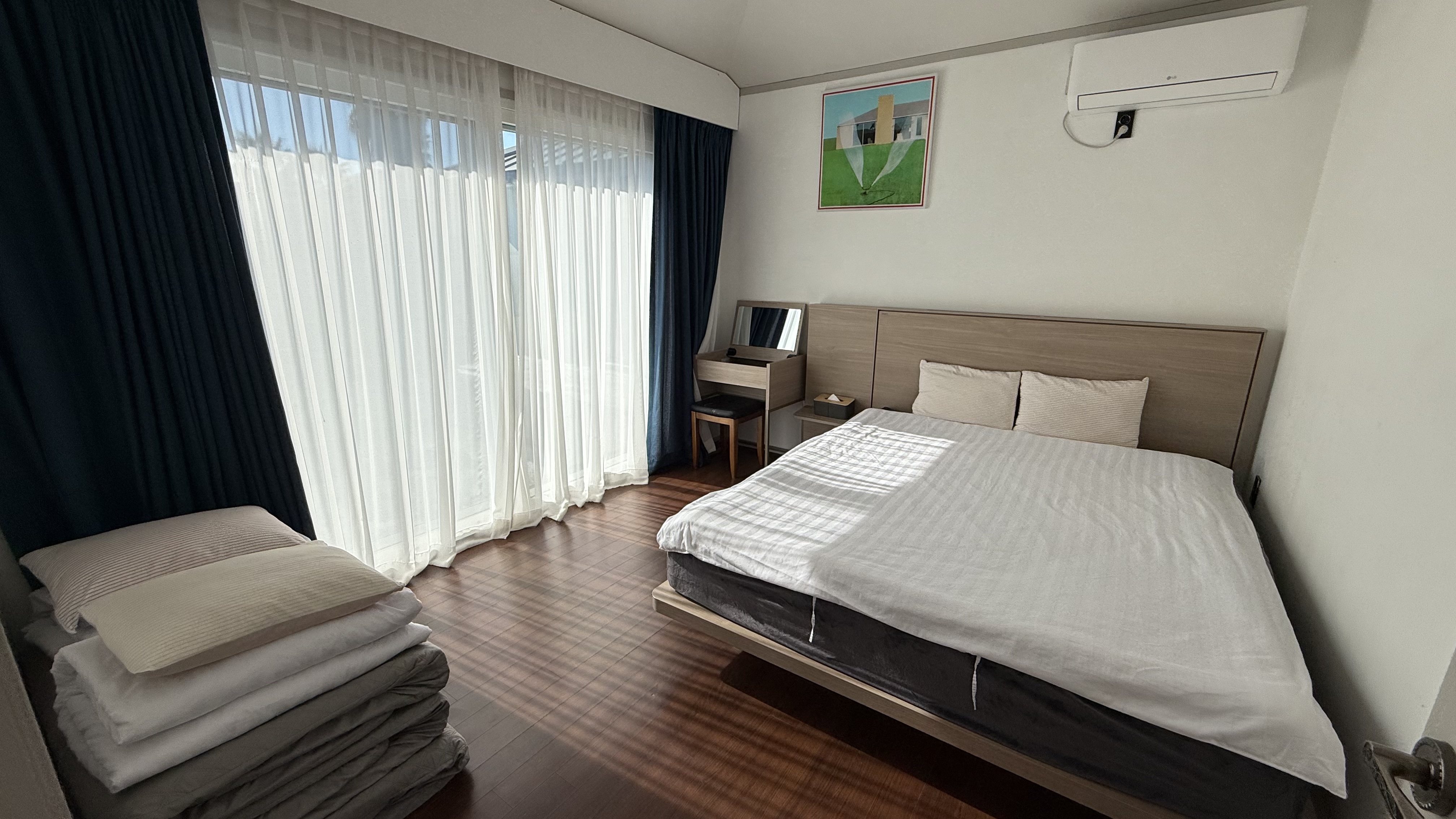 - 옵션: 풀옵션 (가전, 가구, 숙소 소품 전부 포함)