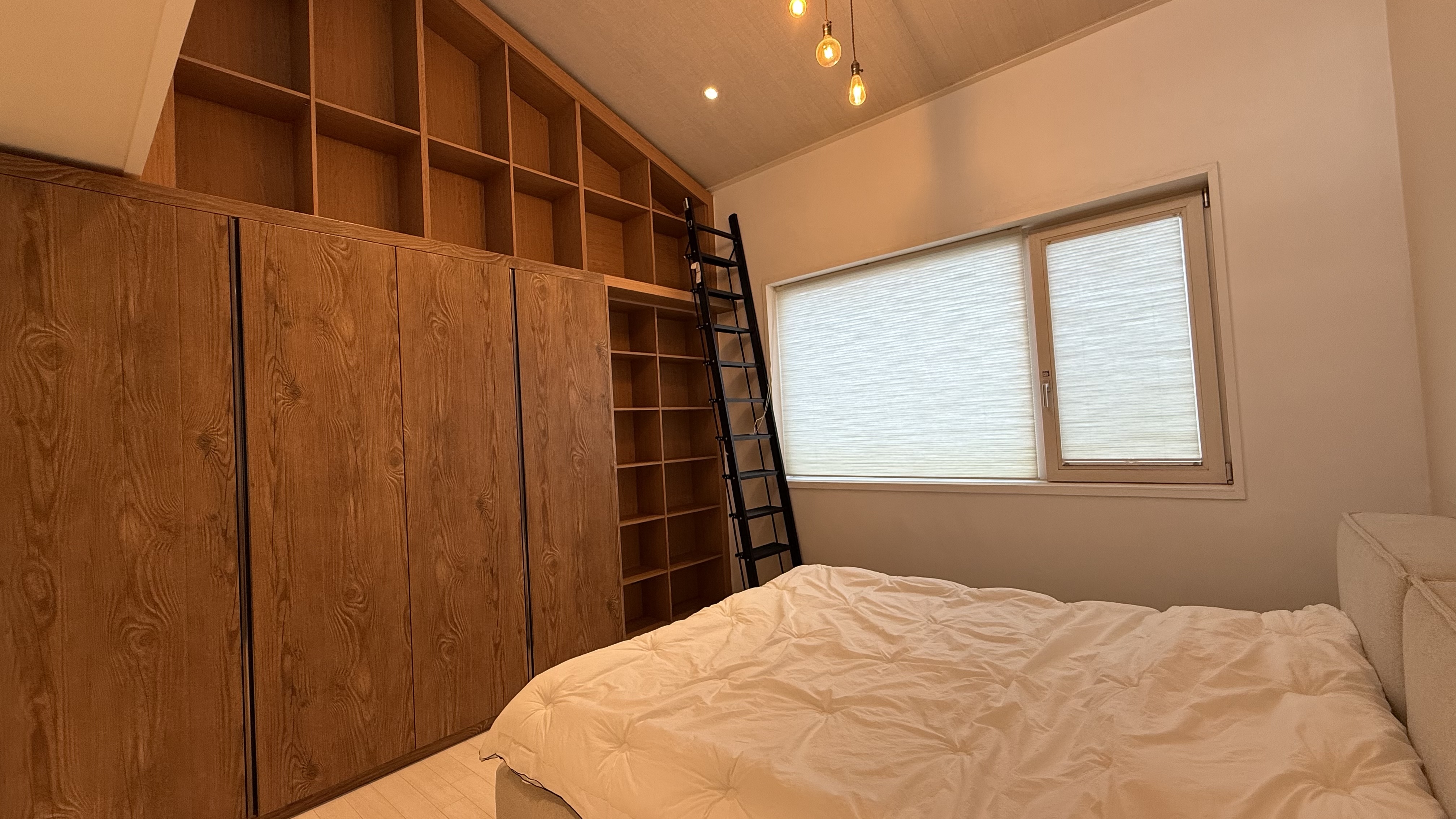 거실과 주방의 층고도 높게 설계되어 개방감이 뛰어나며, 주방 쪽 천장은 유리로 오픈되어 하늘을 바라보며 식사를 즐길 수 있는 구조입니다.